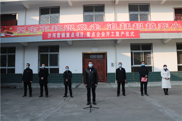 開工儀式上,沙河營鎮(zhèn)黨委副書記、鎮(zhèn)長肖利安緊緊圍繞各開工復(fù)工的重點項目和重點企業(yè)在新型冠狀病毒肺炎疫情期間防控防護和應(yīng)對措施做了闡述,要求各企業(yè)在保證員工健康安全的前提下,加大生產(chǎn)力度,追趕一季度生產(chǎn)目標(biāo)。